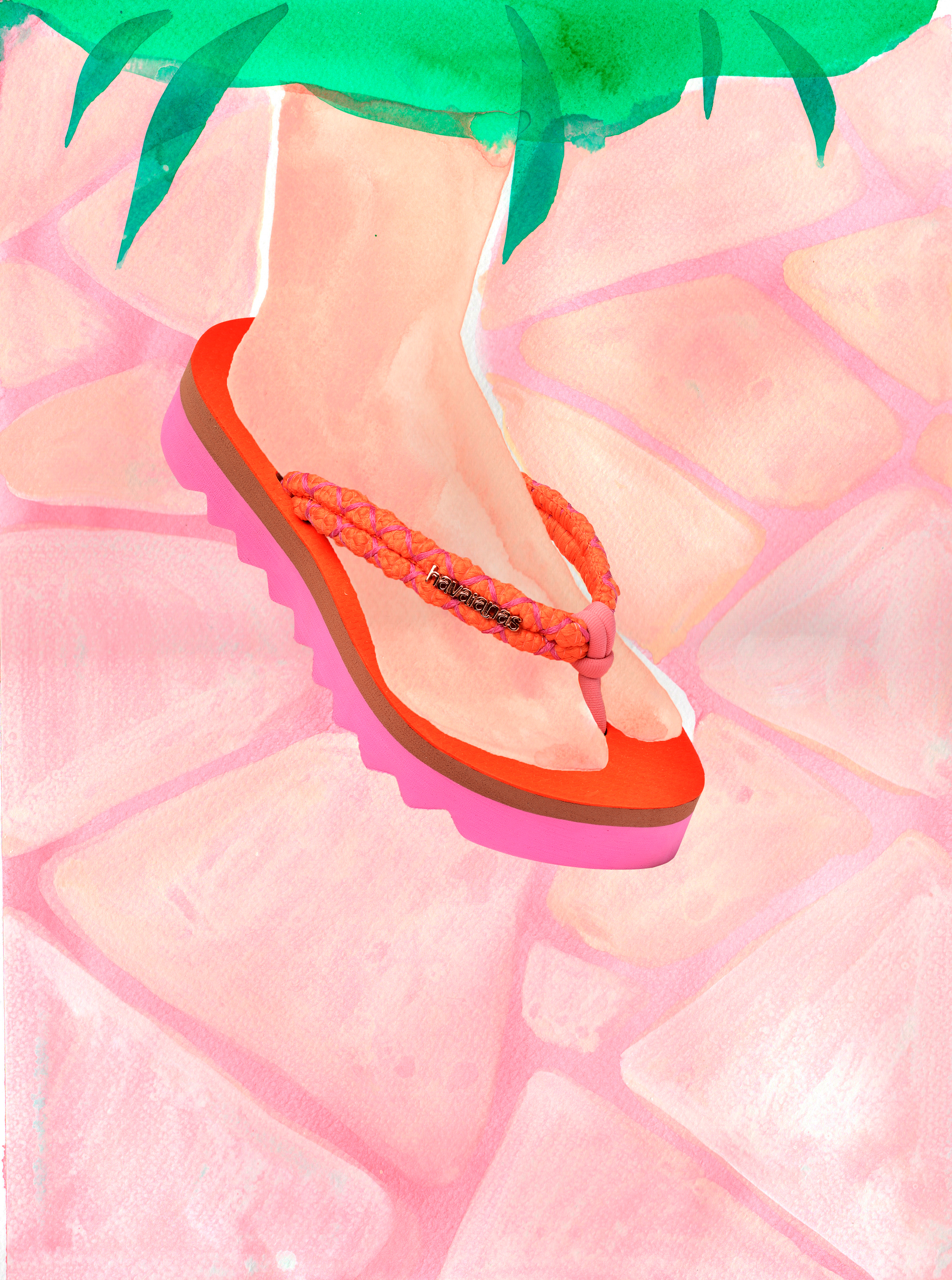 Havaianas transforms the hottest global footwear trends into a bold new silhouette, combining a curved toe with jelly straps